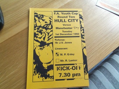 Hull City V Manchester City Youth Cup 2nd Rnd Programme 1 December 1992 Ebay